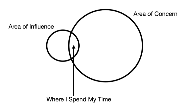 Two other points. First, If I chose to try to change one of the areas of concern outside of my area of influence, I would first do the very difficult work of expanding my circle of influence.